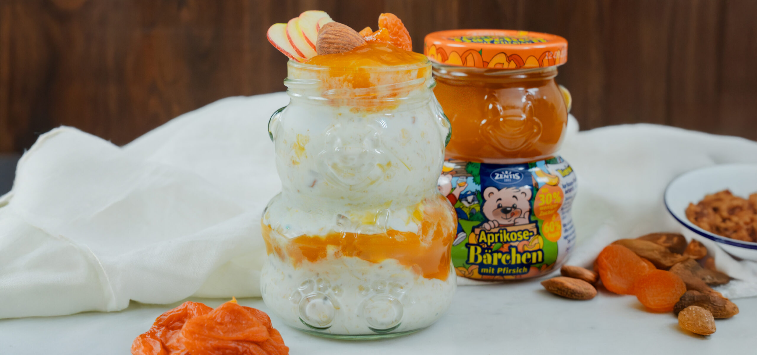 Unsere Bärchen-Gläser sind viel zu süß zum Wegwerfen – deshalb haben wir sie mit einem frischen Bircher Müsli gefüllt und mit Aprikose-Bärchengeschichtet. Perfekt für Meal Prep, Frühstück to go oder einfach für ein bisschen Frühstücksglück im Glas.